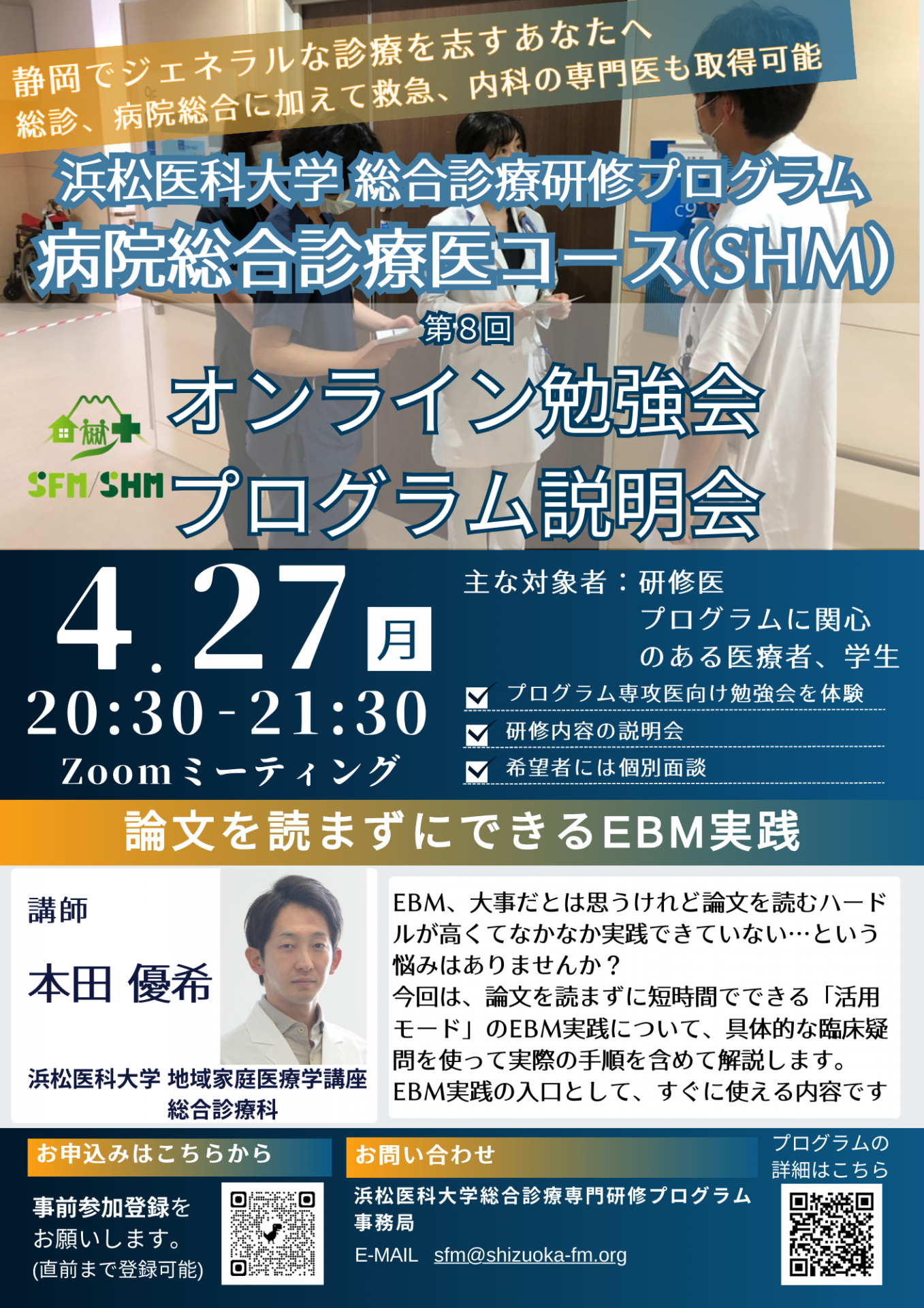 浜松医大総合診療プログラム 病院総合診療医コース オンライン勉強会・プログラム説明会を開催します!(26/4/27)