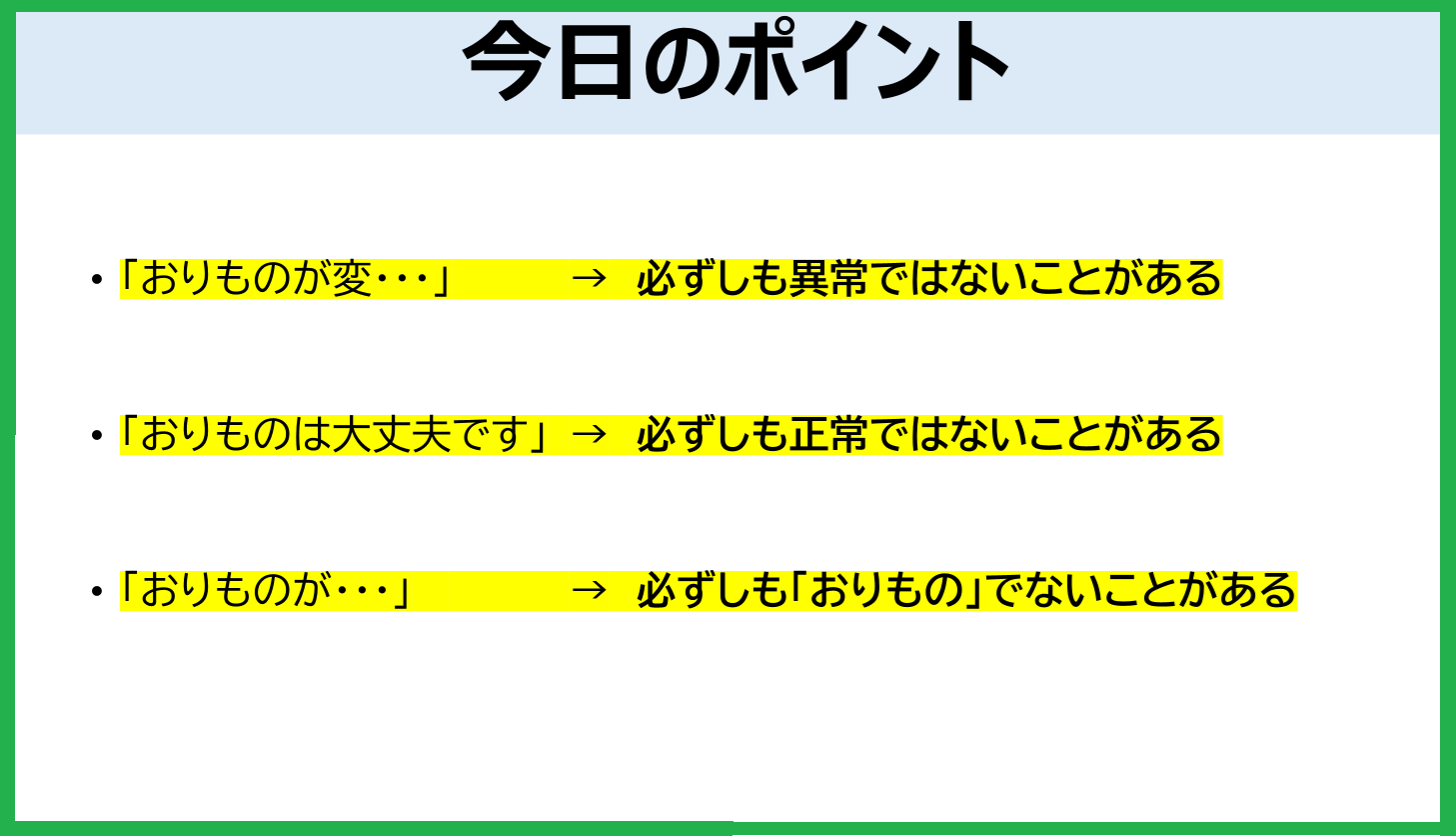 ポイント①:「おりものが変だ」という訴えが必ずしも異常とは限らない