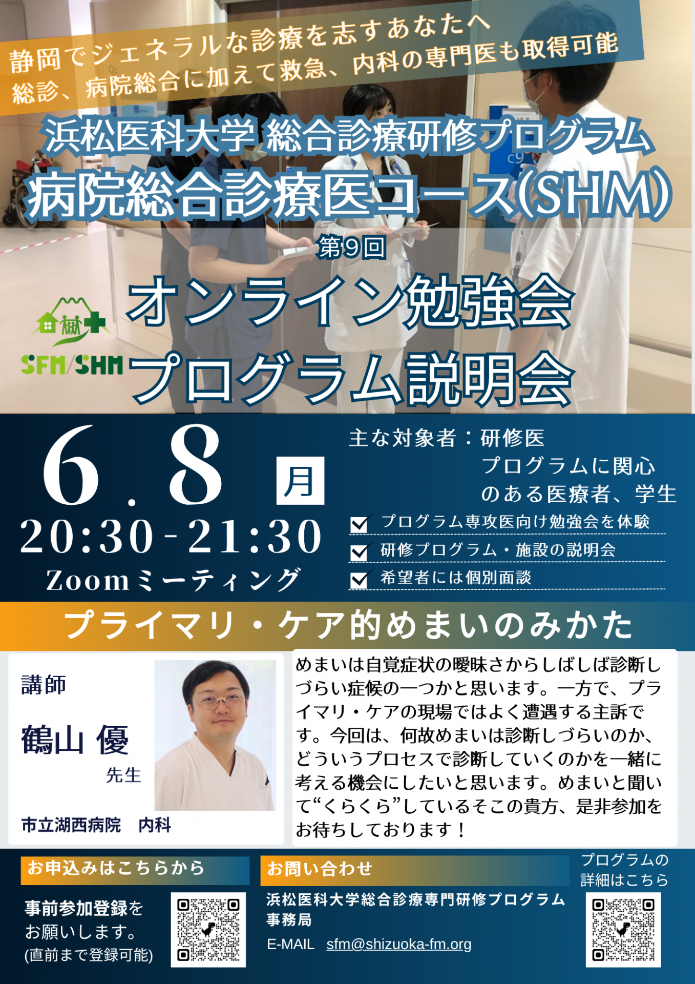 浜松医大総合診療プログラム 病院総合診療医コース オンライン勉強会・プログラム説明会を開催します!(26/6/8)