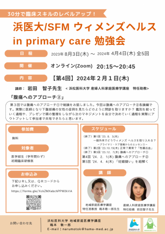 浜松医科大学産婦人科家庭医療学講座の岩田智子先生を講師として迎え、プライマリ・ケアにおけるウィメンズヘルスの勉強会を開催しました。