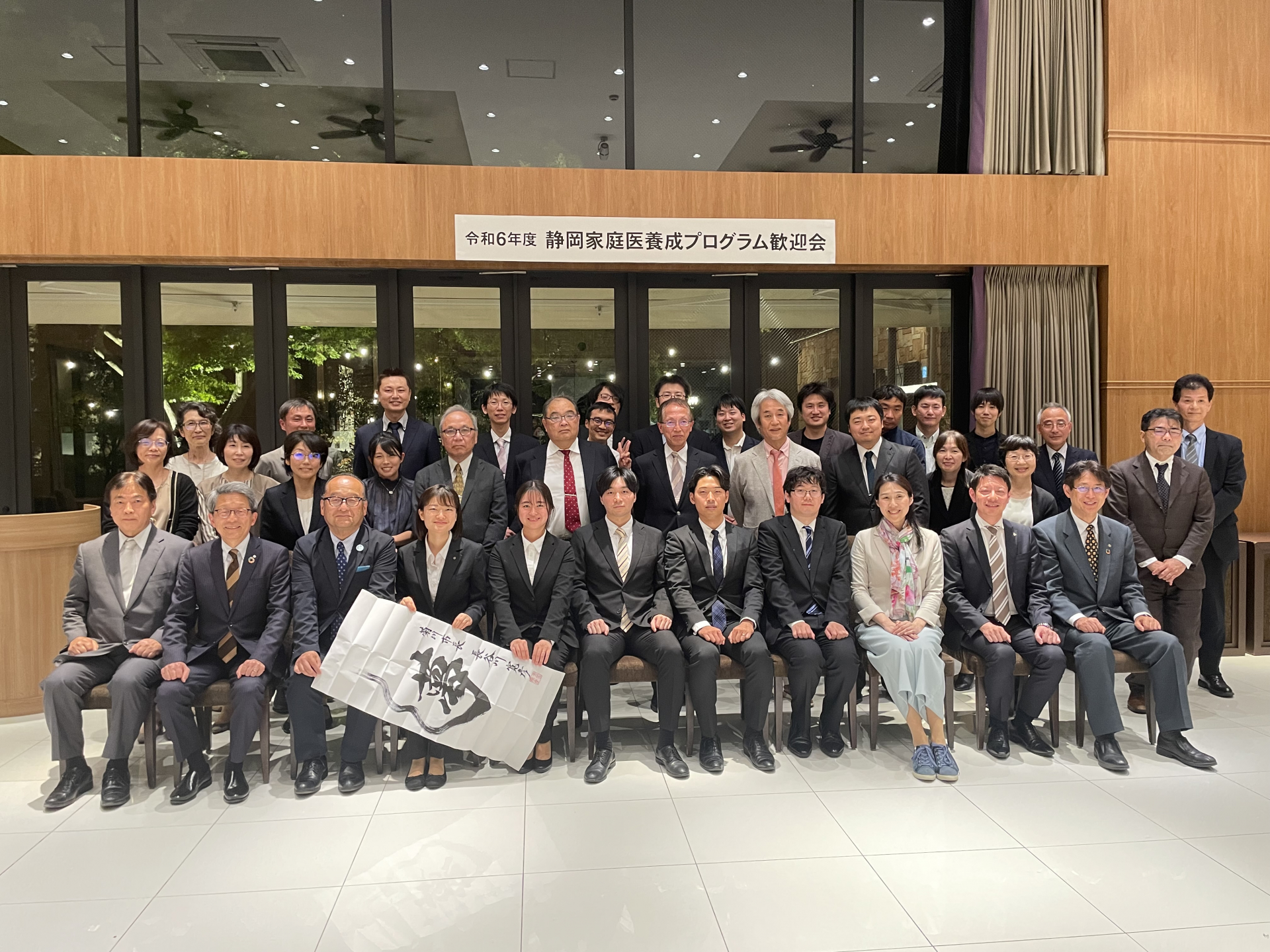 歓迎会には、静岡家庭医養成協議会(磐田市・菊川市・森町・御前崎市・掛川市・袋井市)の各市長・町長、磐田市立総合病院、菊川市立総合病院、公立森町病院、藤枝市立総合病院の院長も出席されました。皆さん、家庭医・総合診療医の育成に向けて全面的に協力し、期待をかけてくださっています。ここまで来るのに、行政の皆さん・病院事務の皆さんのご理解・ご協力も欠かせませんでした。