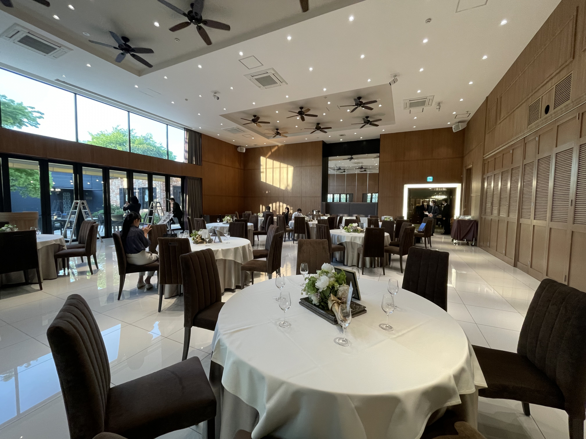 歓迎会、今年はこんな素敵な結婚式場のような会場です。