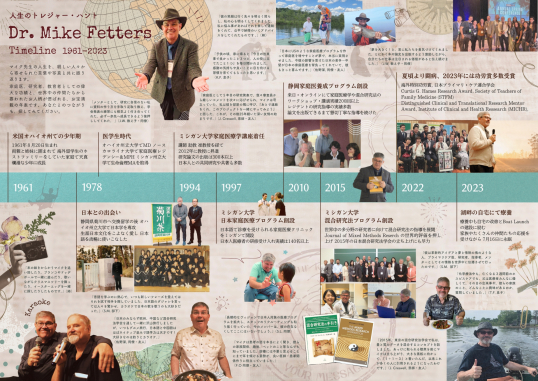 現地ではたくさんの方が立ち寄って思い出をシェアしてくださり、マイク先生と出会う機会がなかった方にもその存在の大きさを紹介することができました。私はSFMの研究プロジェクトでご指導を受けていた一人ですが、どんな小さな発想にもマイク先生が「いいですね、できますよ、やりましょう!」と励ましてくれたことが印象に残っています。そしてこの追悼企画の準備や来場者との会話を通じて、同様の励ましによって家庭医の道を選んだり、論文を発表できたりした人たちが、日本中に、世界中にたくさんいることを実感しました。仕事だけでなく、カラオケ、釣り、グルメ、温泉などを一緒に楽しんだ思い出もたくさん掘り起こされました。本当に大きなスケールの発想と行動力を持ちながら、目の前の一人一人との関係性を大切にする、素晴らしい先生でした。