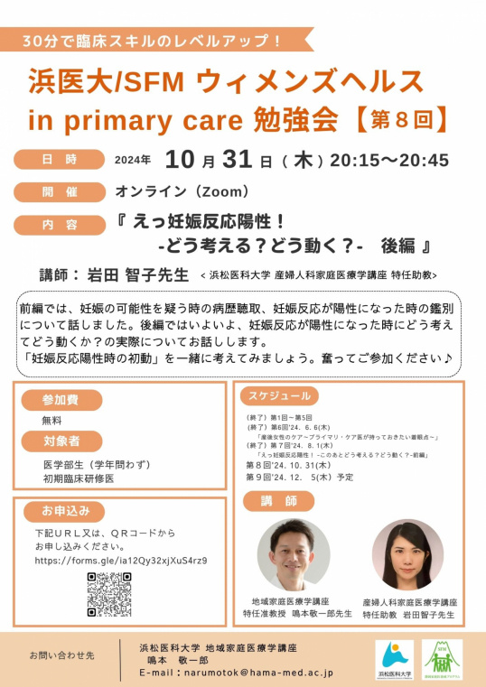 第8回 浜医大/SFM ウィメンズヘルス in primary care勉強会のご案内です。