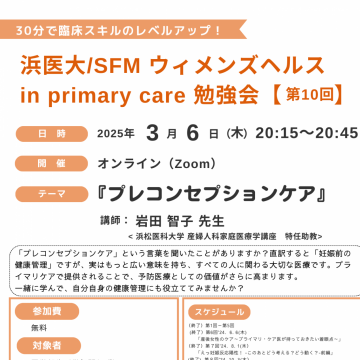トピックス勉強会2025/02/18【第10回】ウィメンズヘルスinプライマリ・ケア 勉強会開催します!(25/3/6)