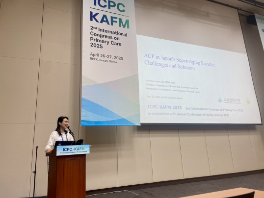 私の発表では、日本におけるACPの現状と課題、浜松市で開発された人生会議手帳、ACPリーダー養成プログラム、そして急性期医療と地域医療・在宅医療との連携モデルに関する進展を報告しました。特に、他国の聴衆からは、浜松市の人生会議手帳を参考にしたいという声もいただきました。