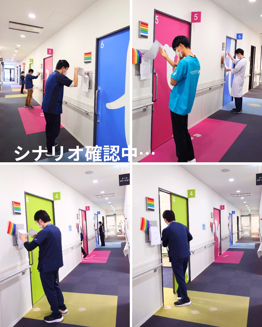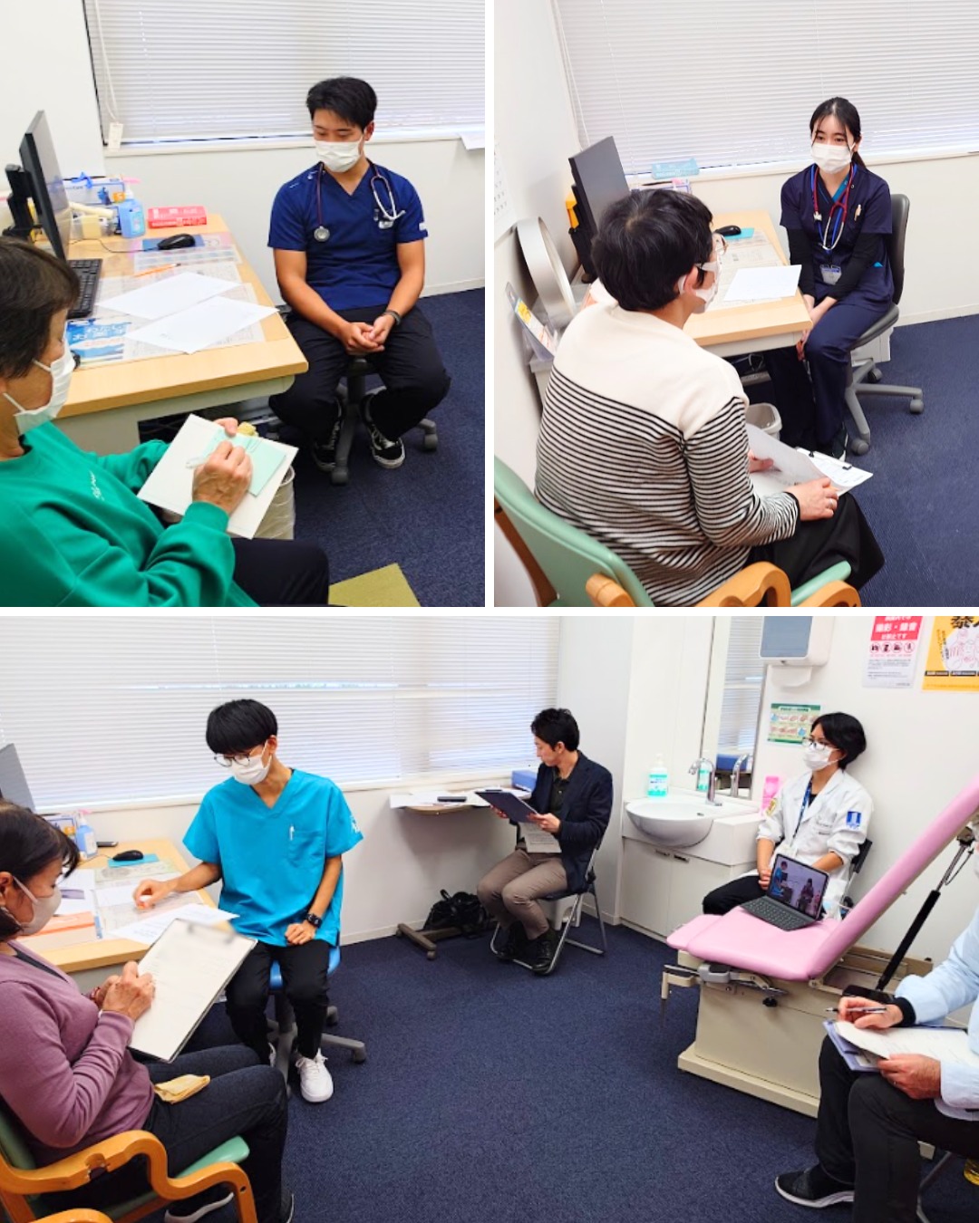 6名の模擬患者さんにご協力いただき、クリニック内に設けた6つのブースを活用して、専攻医全員が2つのケースに挑みました。
